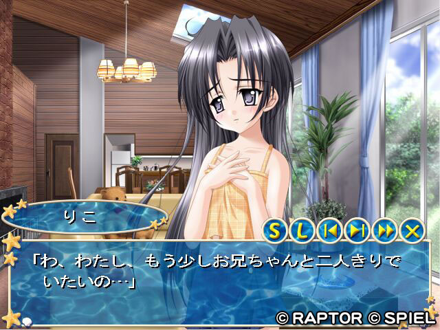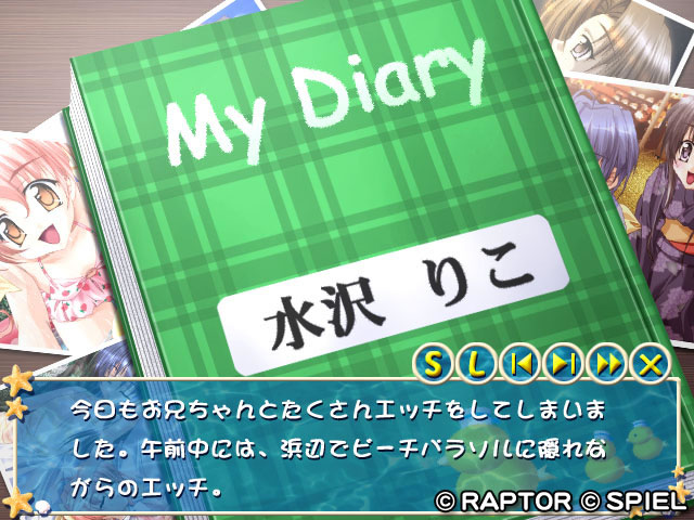 昼パートと夜パートの2部で構成.海で,山で,夏といえばお約束の各種遊びやシチュエーションを3姉妹といっしょに楽しみます.