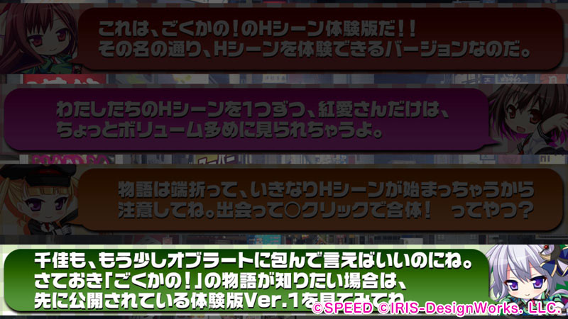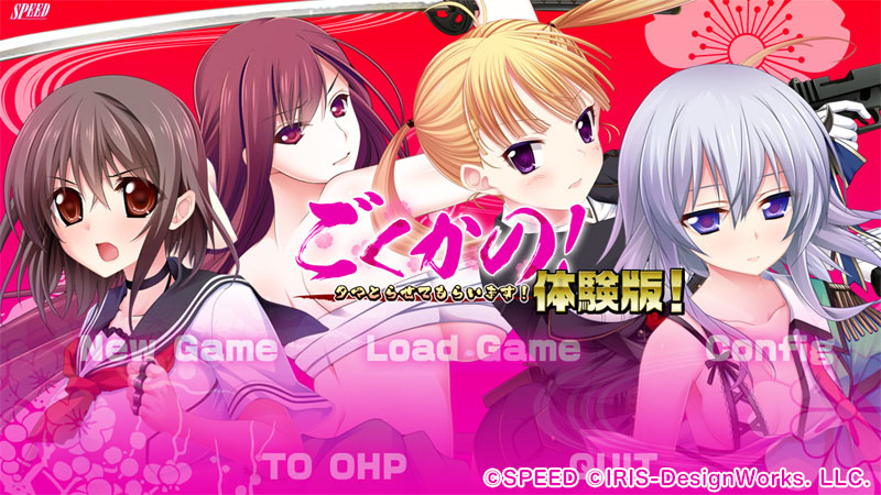 本体験版はインストールの必要がありません.ダウンロードしたファイルを解凍し生成された『gokukano_tr』フォルダの中にある『ごくかの!タマとらせてもらいます!体験版.exe』をクリックすると,ゲームがスタートします.